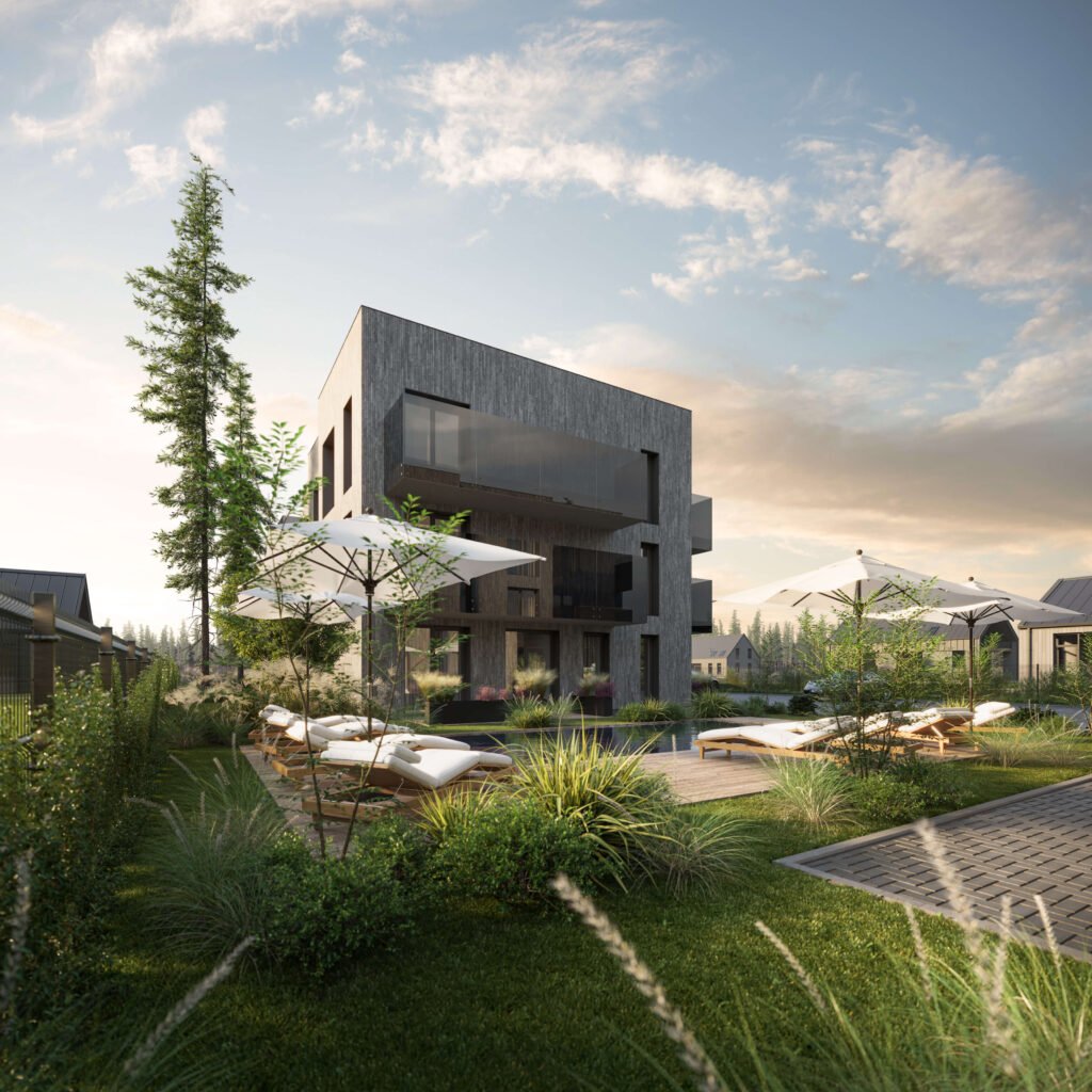 Butų plotai pirmojo etapo metu svyravo nuo 26 iki 46 kv. m – nuo kompaktiškų, investicijai ar poilsiui skirtų erdvių iki patogesnių variantų šeimai ar ilgesniam gyvenimui. Kiekvienas būstas suprojektuotas taip, kad maksimaliai išnaudotų erdvę ir užtikrintų funkcionalumą.